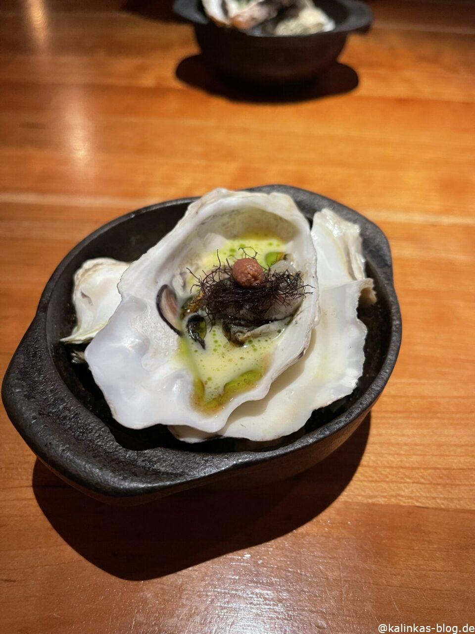 Gegart wird über Rauch, offenem Feuer oder mit brennendem Fett confiert – das riecht man schon beim Eintritt. Das Restaurant ist wunderbar entspannt, keine Notwendigkeit sich aufzubrezeln… abgesehen davon, dass man nach dem Essen sowieso nach Lagerfeuer riecht. Ein Besuch in der Küche ist für jeden Gast eingeplant. Man wird zwischen 2 Gängen mit einem anderen Tisch gemeinsam in die Küche eingeladen und darf hinter die Kulissen schauen. Dort darf man zusehen, wie ein Gang mit kochendem Fett confiert wird. Die Mitarbieter nehmen sich hier viel Zeit für Fragen und Erklärungen. Mein Respekt für alle, die hier im Hochsommer bei der Hitze arbeiten.
