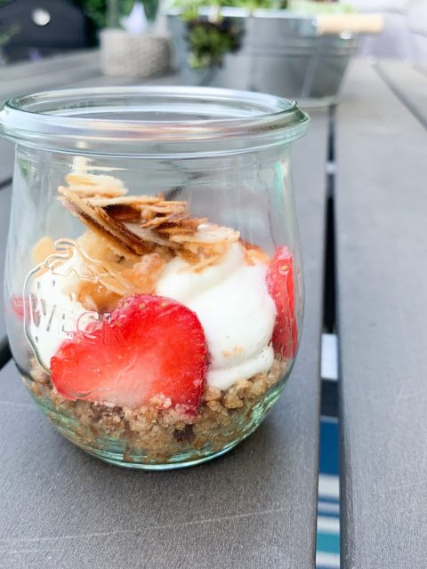Solange es Erdbeeren gibt muss man einfach jedes Jahr mit Erdbeeren herstellen, oder? Je reifer die Erdbeeren sind, desto weniger Zucker braucht man. Dieses Desserts sieht deutlich aufwändiger aus als es ist, und man kann es wunderbar zu Freunden mitnehmen.