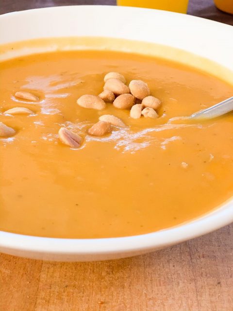 Die Suppe sieht sehr unscheinbar aus, und ist dazu auch noch super schnell vorbereitet. Trotzdem ist sie ein absolutes Überraschungspaket. Die Süßkartoffel gibt die Bindung und eine leichte Süsse, durch die Erdnüsse erhält die Suppe einen schönen Crunch und wenn ihr Kokosmilch verwendet und dazu noch etwas Kurkuma schmeckt das Ganze auch noch asiatisch.