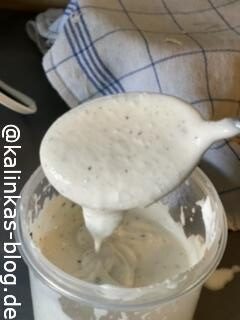 - Im Kühlschrank aufbewahren, mit Folie abgedeckt hält sich die Mayo 2-3 Tage