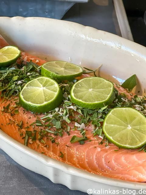 Sobald der Sommer anfängt, und im Moment reicht es schon wenn es mal 2-3 Stunden nicht regnet, haben wir wieder Lust auf frischer und leichte Gerichte. Da wir aktuell auch versuchen weniger Fleisch zu essen gab es heute diesen super schnellen Lachs aus dem Ofen.